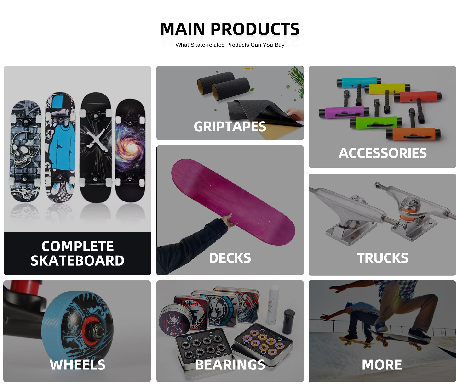 Main categories: Skateboard, Skateboard Wheel, Skateboard Bearing, Skateboard Truck